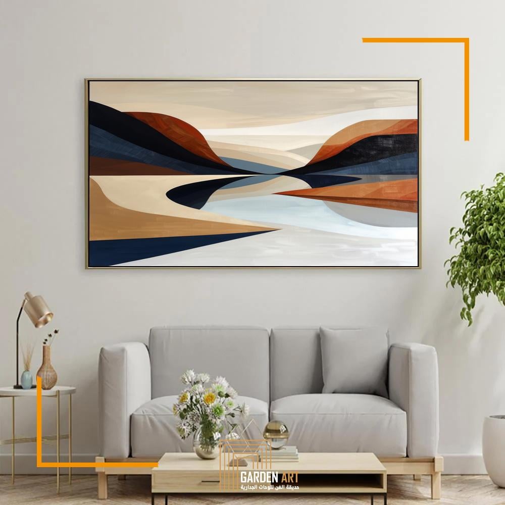 لوحة فن تجريدي - اشكال جبال مع النهر